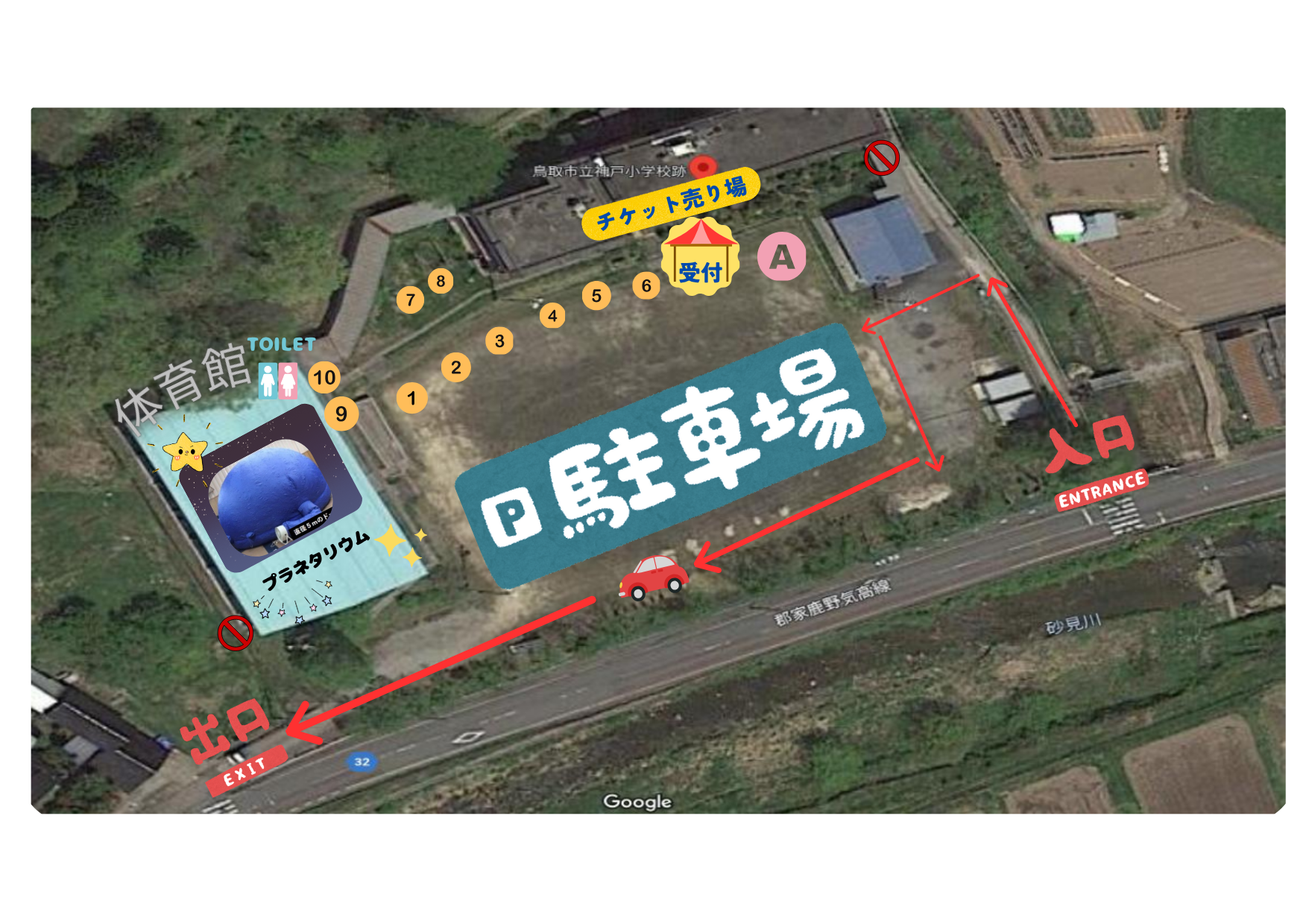 ●大和体育館駐車場(〒680-1151 鳥取県鳥取市倭文121−2) 無料送迎あり